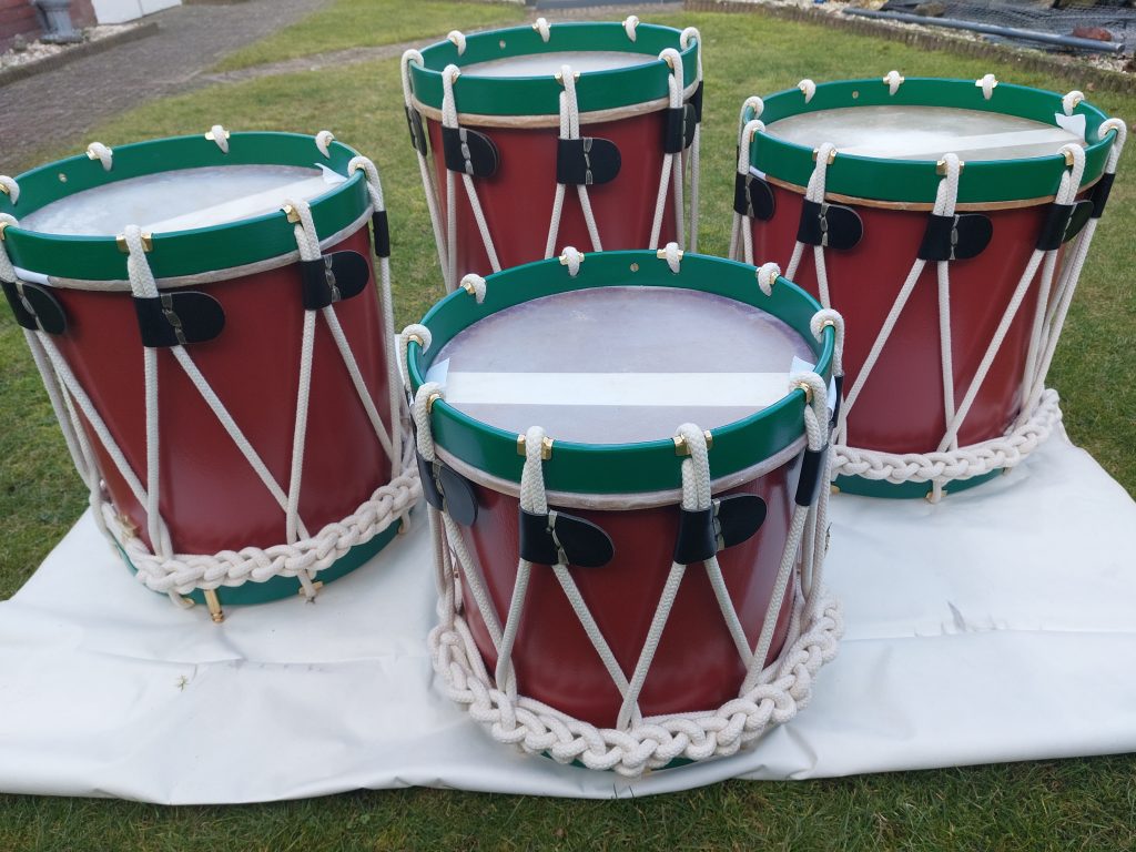 Tevens alle trommen voorzien van een nieuwe verflaag, nieuw gildekoord en mooie spanleertjes.