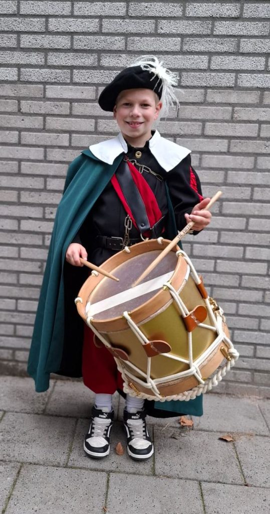 “Gino” werd te GROOT voor zijn KLEINE trom. We hebben voor Gino een nieuwe trom gemaakt. Gecombineerd met een nieuwe junior-bandelier kan hij weer jaren vooruit.